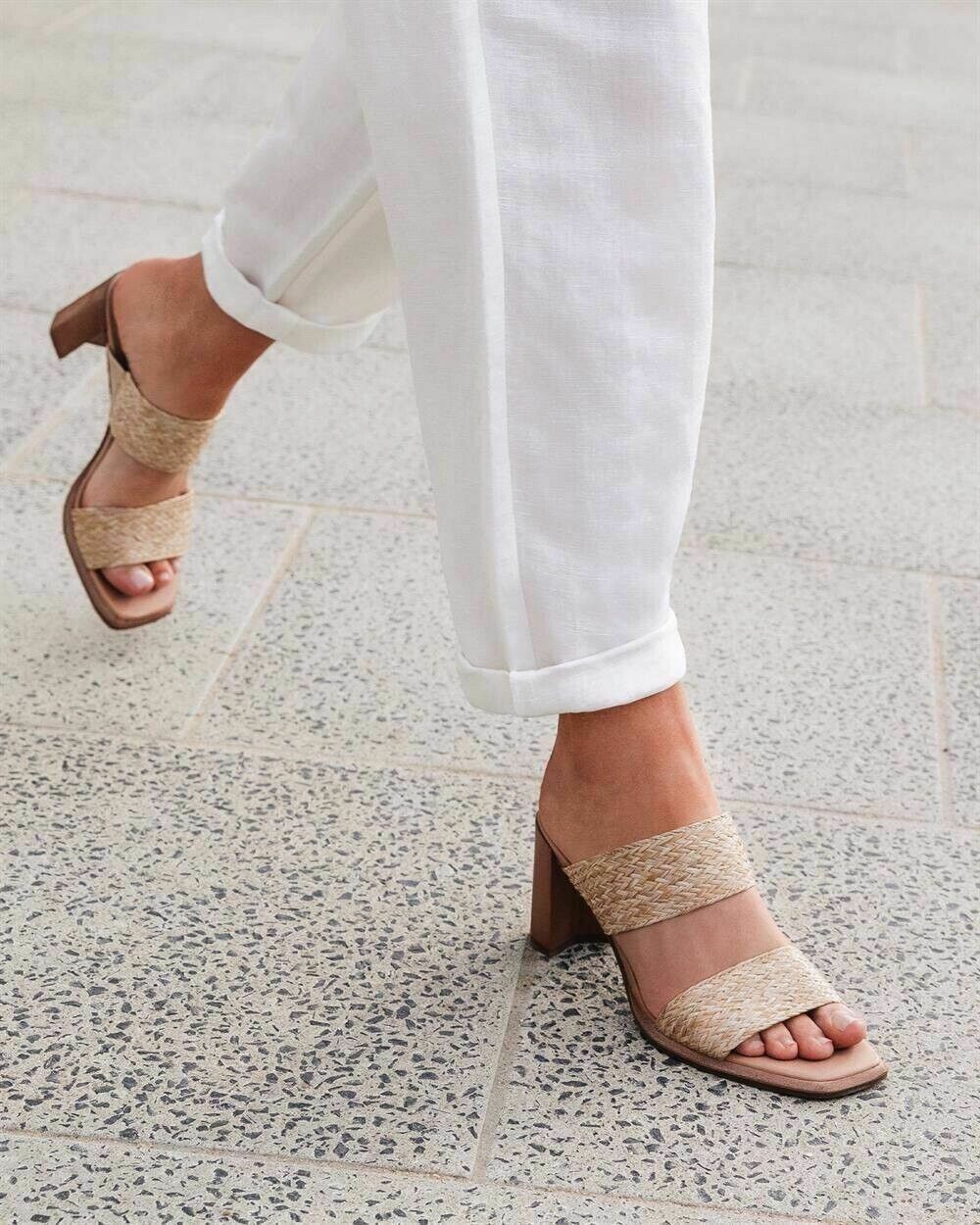 Surrey Raffia Strap Block Heel Sandals - EU36, 7.5cm, Beige.