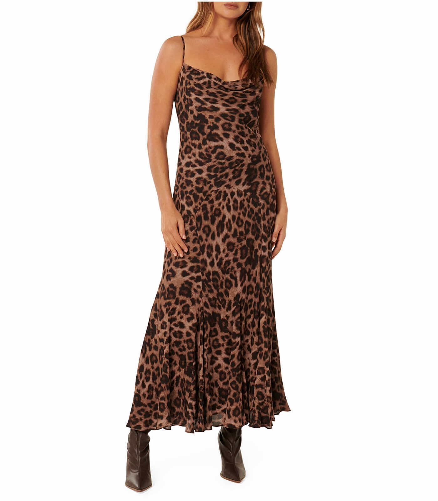 Leopard Cowl Neck Maxi Slip Dress - AU 8, Brown