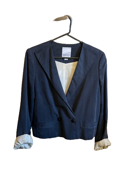 Navy washed silk crop blazer premium