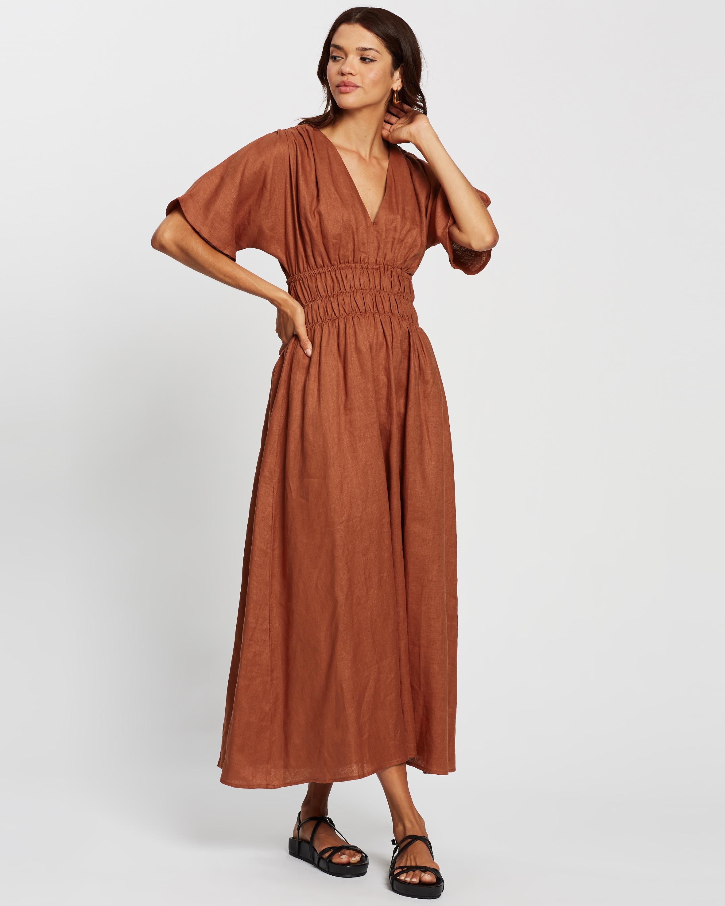 Linen Shirred Midi Dress