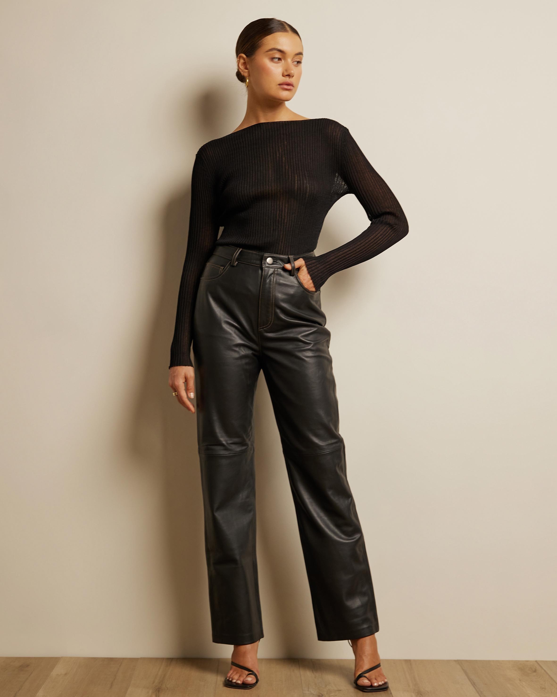 Margo Straight Stitch Detail Leather Pants