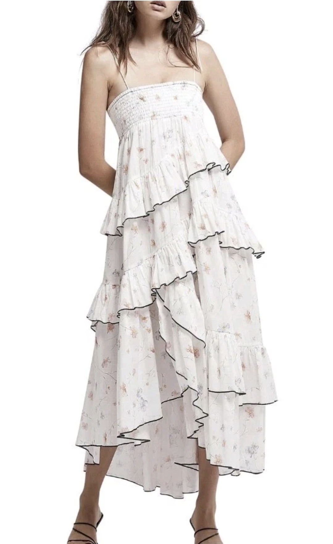 Times Floral Print Strapless Lace Midi Cocktail Dress AU XS
