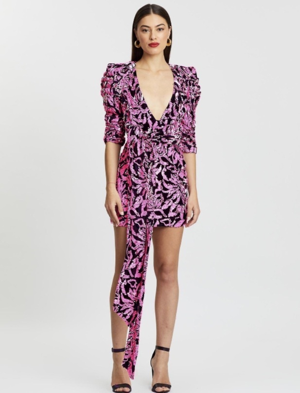 pink and black mini sequin dress