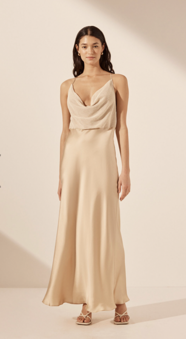 Valeria Silk Contrast Cowl Neck Maxi Dress