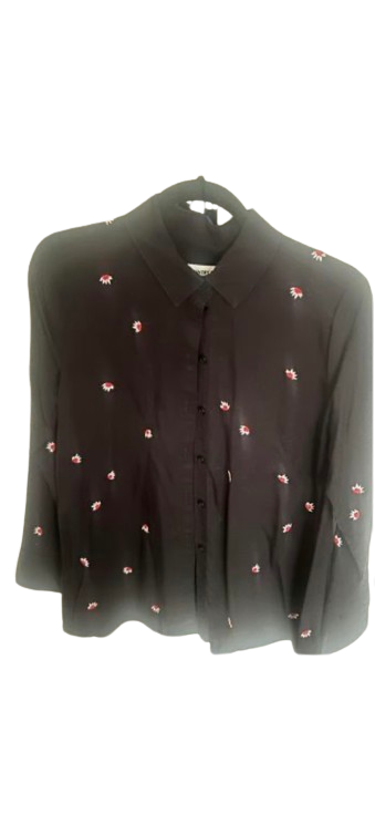 black shirt with embroidered flowers
