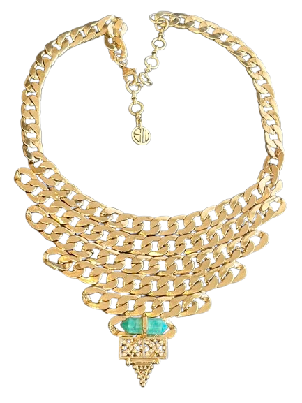 SIAM NIGHTS COLLAR NECKLACE GOLD WITH TURQUOISE & CRYSTALS
