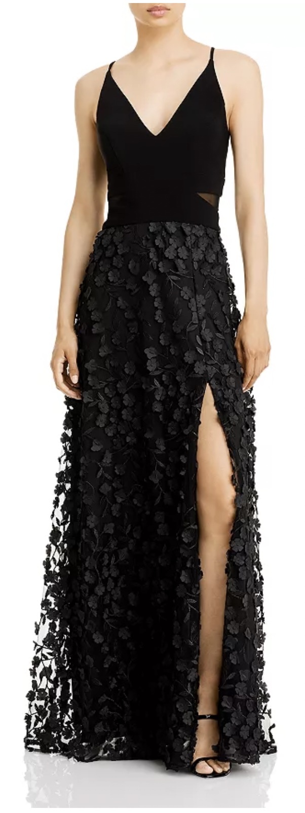 Floral Applique Gown - Black