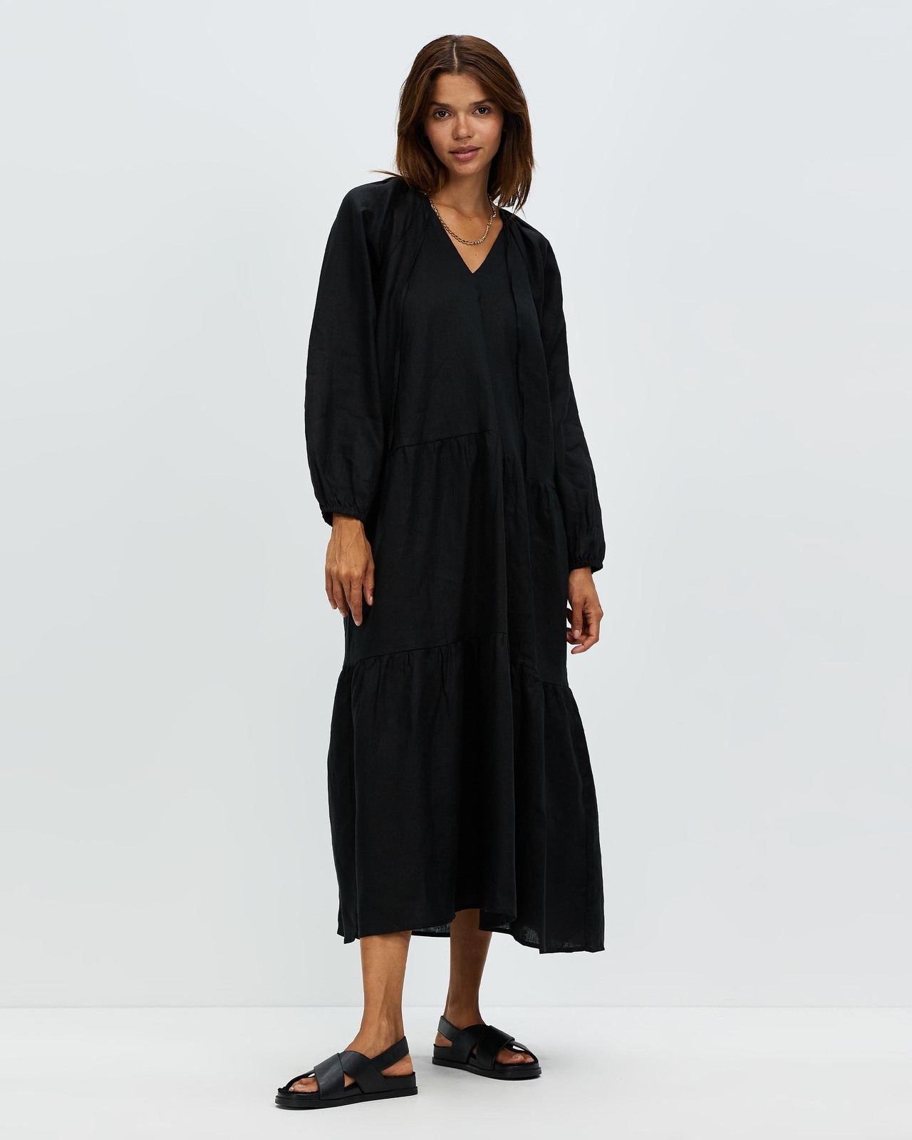 Tiered Linen Long Sleeve Dress