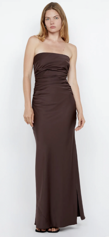 ETERNITY STRAPLESS MAXI DRESS - DARK CHOCOLATE - 10