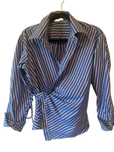 Stripe blue and white tie wrap shirt