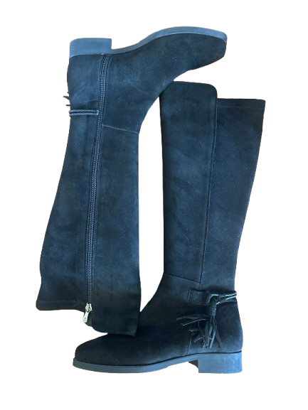 Black suede long boots with tassel detail