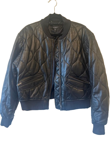 Black quilted bomber jacket with zipper