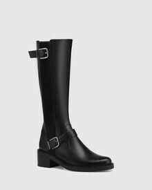 Braxton Black Leather Block Heel Long Boot