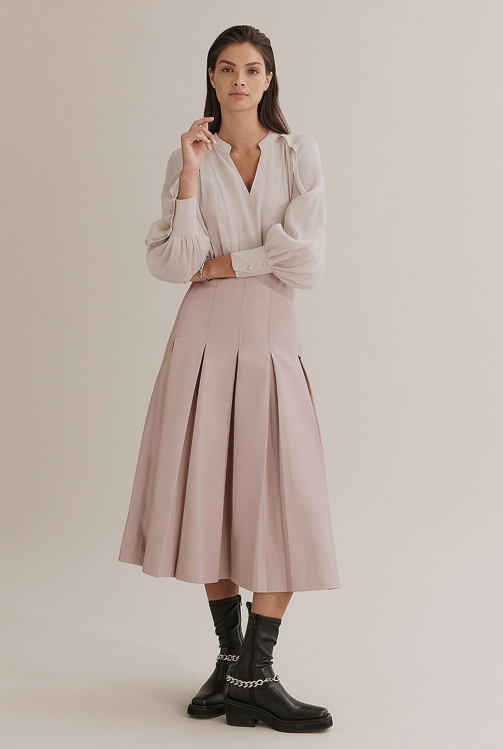Inverted Pleated Skirt - Leather Look