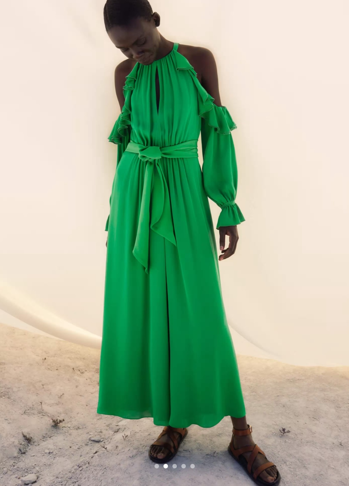 Silk Exposed Shoulder Maxi Dress + Belt