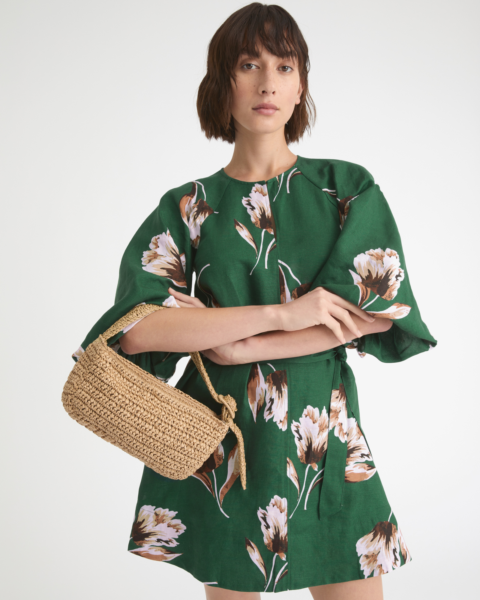 Square Neck Linen Midi Dress