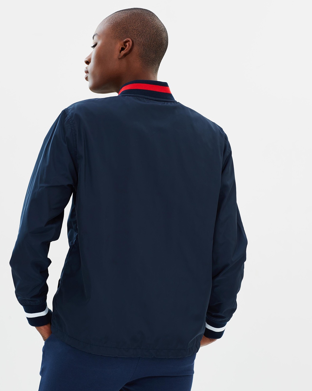 Fusing sporty luxe looks with practical outwear constructions, the **Lucie Jacket** by **Le Coq Sportif** pays tribute to the brands sports heritage with a preppy ribbed collar and modern styling. Our model is wearing a size small jacket. She usually takes a standard AU 8/Small, is 5โ9โ (175cm) tall, has a 84cm bust, 89cm hips and a 63cm waist. - Length: 60cm (size small) - Regular fit - Lightweight, waterproof shell; cotton lining - Navy hue; Red and white striped design - Press-stud fastenings down front - Embroidered branding on chest - Long sleeves; ribbed cuffs - Drawstring hemline