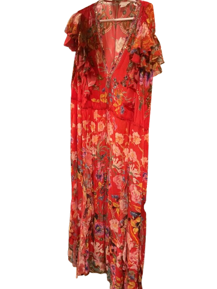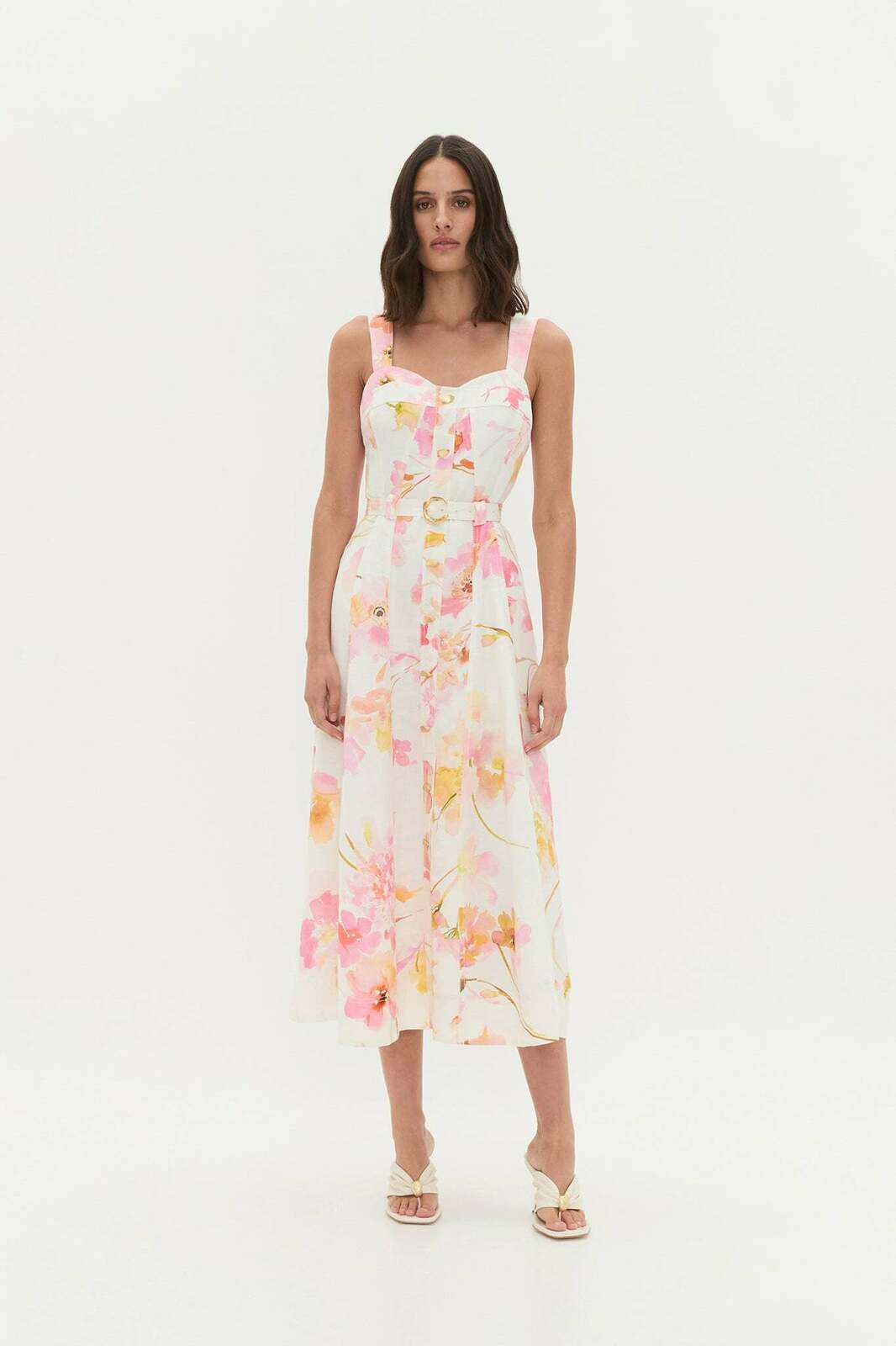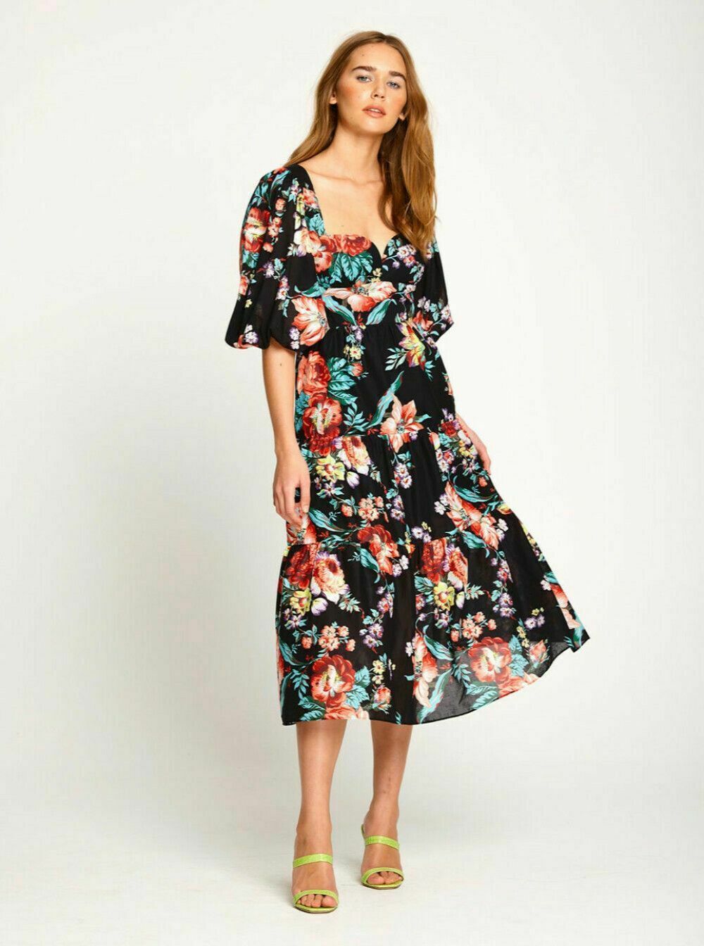 Floral Baby Dee Tiered Puff Sleeve Cotton Midi Dress RRP$395