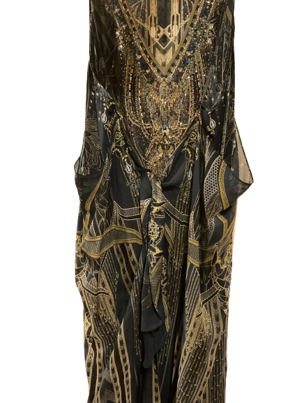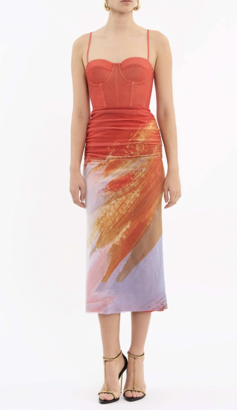 No Filter Plunge Neck Silver Pencil Midi Dress