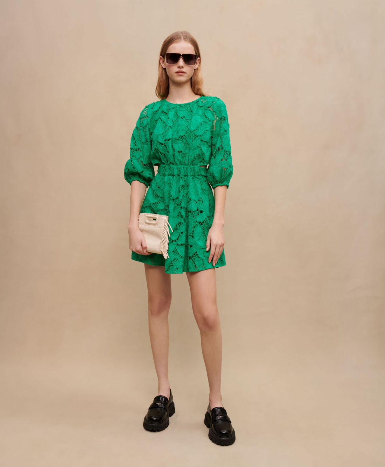 Silk Long Sleeve Pink Spade Flower Ruffle Shirt Dress