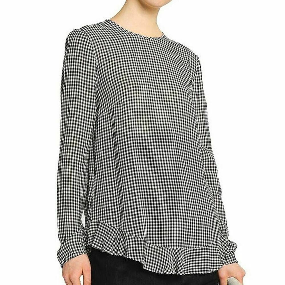 Gingham Black White Check Long Sleeve Blouse Top RRP$310