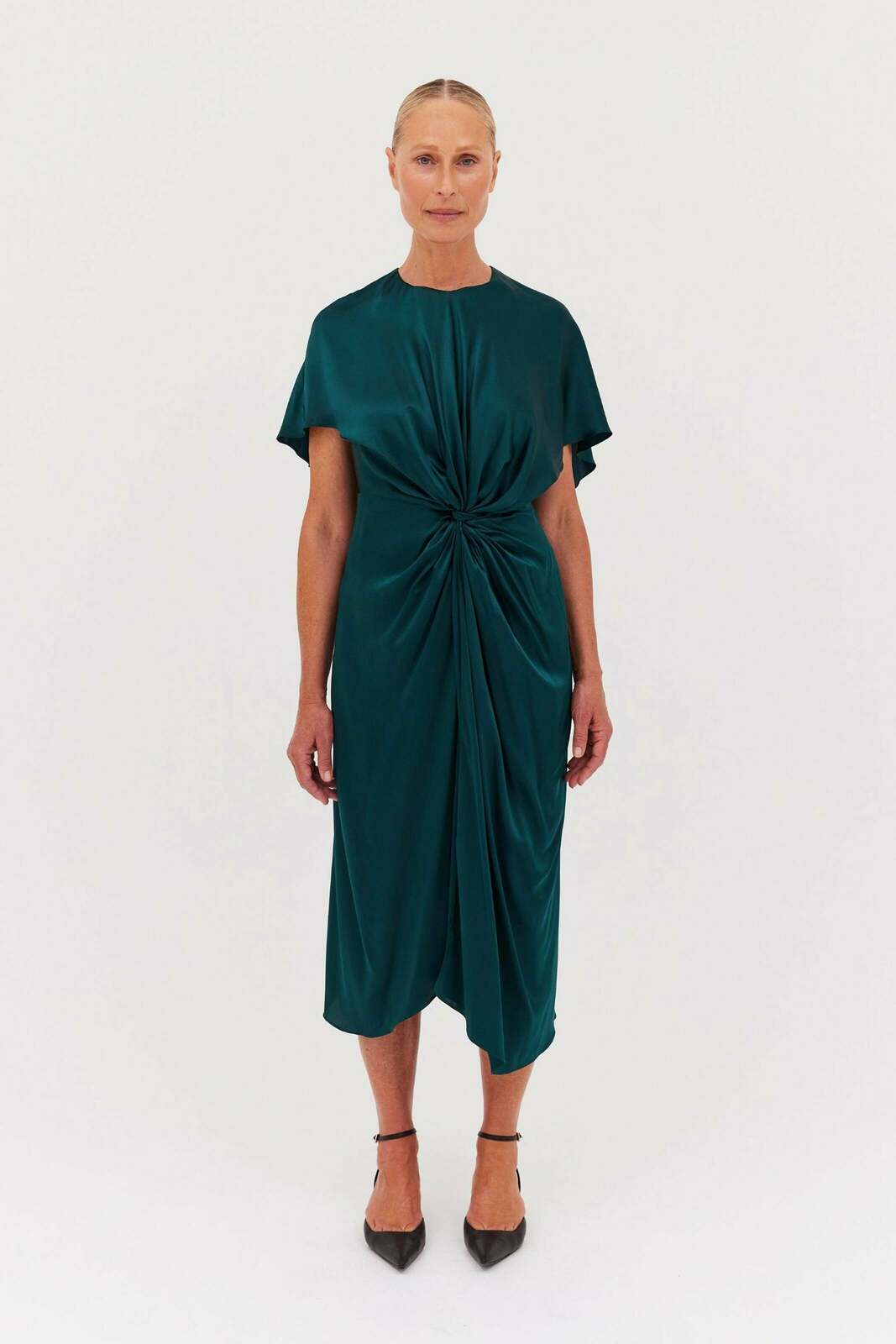 No Filter Plunge Neck Silver Pencil Midi Dress